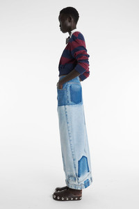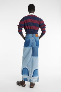 Crafted from two-tone recycled denim, this high-rise maxi skirt is defined by the trouser details mirrored to the hem. Cut in a classic five-pocket style, it falls straight from hip to hem with a side slit for ease of movement. Shown here with Twisted Collar Rugby Jersey Burgundy Navy and Gabi Clog With Exaggerated Studs Brown Silver. FIT & SIZE - Designed with a high waist. - True to size we recommend choosing your regular size. - Model is 181 cm / 5'11". PRODUCT DETAILS - 100% Cotton - Concealed zip fastening. - Five-pocket style. - Dry clean. - Made in Paraguay.