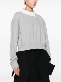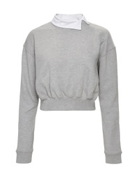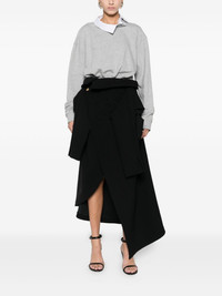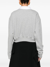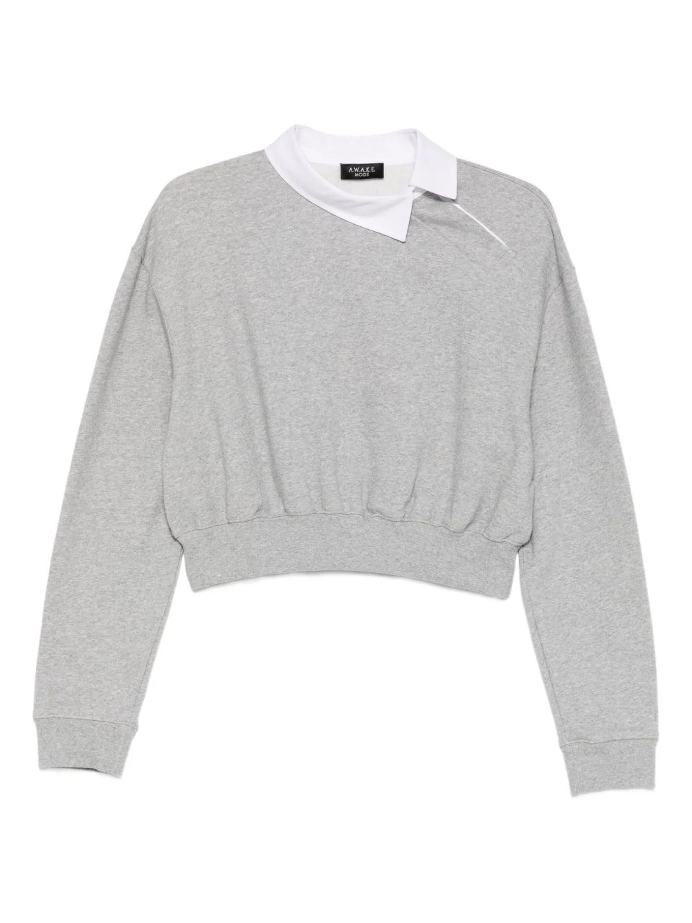 The Rugby Shirt in Grey by A.W.A.K.E. Mode is a cropped, long sleeve shirt featuring an asymmetrical collar neckline with concealed button placket. Perfect for layering in transitional months. - Slightly cropped, relaxed fit - #AW25.JT03.OC02.Grey