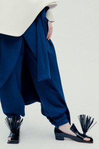 Crafted from polished black leather, these sculptural loafers feature a squared toe with an asymmetric opening and a low block heel for grounded wear. An oversized fan-like embellishment rises from the vamp, built from layered strips that add movement and dimension. FIT & SIZE - True to size, we recommend choosing your regular size. PRODUCT DETAILS - 25mm heel. - 100% Nappa Leather 100% Leather Lining - Comes with a dust bag. - Made in Italy.