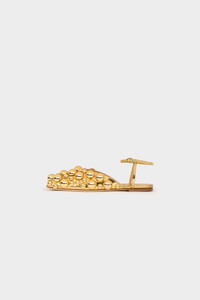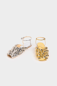 These flat sandals feature an open-toe design and are detailed with hemisphere accents on the contrasting silver and gold upper. The low-profile silhouette balances the shimmering detail with a clean, contemporary line. FIT & SIZE - True to size, we recommend choosing your regular size. PRODUCT DETAILS - Upper 100% Syntetic Insole 100% Leather Sole 100% Leather - Comes with a dust bag. - Made in Italy.