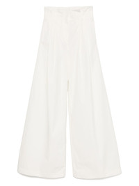 wide-leg trousers Highlights - White - Front zip fastening - Two diagonal pockets to the sides - Belt loops - Pleat detailing Imported Composition Cotton 100% SIZE & FIT Model measurements Height 5 ft 9 in(1.75 m) Bust/Chest 34.64 in(88 cm) Hips 36.61 in(93 cm) Waist 26.37 in(67 cm) FittingInformation Designed with a wide-leg cut, these trousers allow for a close fit at the waist and offer a loose and roomy fit over the leg Made from a midweight non-stretch fabric