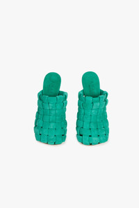 These mules are artfully woven from soft suede. Simply slip on and wear yours with everything from a skirt to cropped jeans. Shown here with Maxi Dress Lilac and Double Mia Bag. Also available in cornflower and light turquoise. FIT & SIZE For this style, we recommend choosing one size smaller due to its slightly larger fit. Keep in mind that foot width can also impact sizing choice. PRODUCT DETAILS 80mm heel. Upper: 100% Suede Sole: 100% Leather Comes with a branded dust bag. Made in Italy.