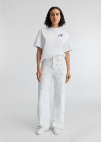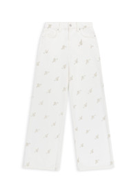 Part of the limited edition anniversary collection, the 10 Years jeans symbolize a decade of dreaming. This wide-leg pair is crafted from cotton-denim that’s screen-printed all over with our Signature A. The model is 178 cm / 5”10 ft and wears a size 26.