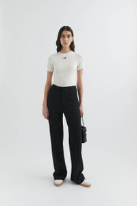 The Arch trousers are cut from an Italian fabric that’s blended with a touch of stretch for comfort. The tailored silhouette features sharp pressed creases through the front and discreet slits at the back of the hems. These mid-rise trousers are cut in a straight-leg fit. The model is 179 cm / 5'9 ft and wears a size 36.