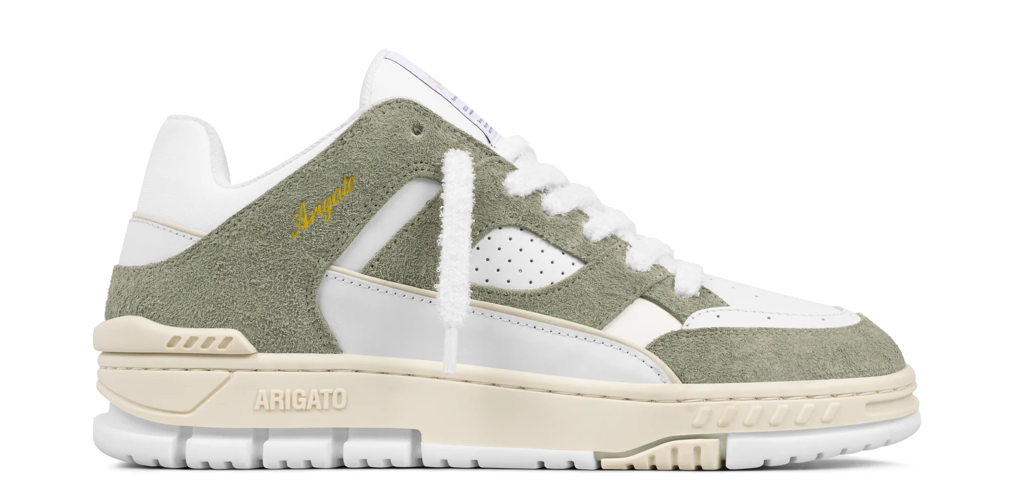 The Area Lo sneaker pays homage to ‘90s basketball styles. Handcrafted from premium leather and SEAQUAL® YARN, it has paneled uppers finished with perforations and heel spoilers.