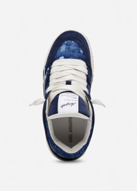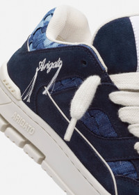 The Area Lo sneaker pays homage to ‘90s basketball styles. This version is crafted from premium suede and paneled with denim that’s cut into strips and woven by hand, making each pair unique. Our embroidered logo details the side and is artfully trimmed with loose threads. Style Details - Upper: 60% Suede + 32% Cotton + 8% Leather - Lining: 82% Recycled Polyester + 9% PU + 9% PA - Sole: 100% TR, with TPU heel clip; height measures 37mm - European Sizing - Branded woven tongue label - Flat cotton laces - Handmade in Portugal