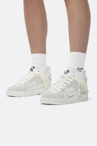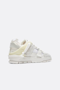 Part of the Area collection, the deconstructed Area Patchwork sneaker is handmade from LWG-certified leather, TPU, and recycled polyester. Complete with heel spoilers, this model is set on expanded rubber soles that are custom-molded with angular grooves and an ‘Arigato’ logo. Style Details - Upper: 56% leather + 44% polyester - Lining: 85% recycled polyester + 15% polyurethane - Sole: 100% TR, with TPU heel clip; height measures 37mm - European Sizing - Branded woven tongue label - Decorative embroidered branding - Recycled polyester branded dustbag - Responsible packaging - Handmade in Portugal