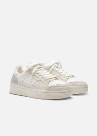 The Clay sneaker is a modern take on classic court styles from the ‘80s. Its low-profile silhouette is handcrafted from panels of leather and textile, and set on soles that are discreetly embossed with tennis net graphics. Style Details - Upper: 53% Leather, 47% Polyester - Lining: 100% Polyester - Sole: 77% Rubber, 22% EVA - Height measures: 40mm - European sizing - Logo stamp in metallic gold - Flat cotton laces - Handmade in Vietnam