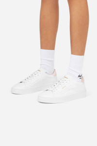 The Court sneaker is handmade from LWG-certified leather and suede, and backed with a comfortable microfiber and recycled polyester lining. Set on thick rubber soles that are partly recycled, the minimal silhouette is finished with a contrasting heel tab, discreet gold logo, and perforations. Style Details - Upper: 93% leather + 7% suede - Lining: 77% leather + 14% microfiber + 9% recycled polyester - Sole: 80% rubber + 20% recycled rubber, height measuring - European Sizing - Logo stamp in metallic gold - Flat cotton laces - Recycled polyester branded dustbag - Responsible packaging - Handmade in Portugal
