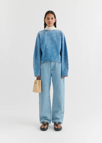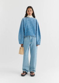 The Daisy sweatshirt is cut from cotton-denim in a relaxed silhouette. Our Signature A details this piece in contrasting shades. The model is 172cm / 5'7.5cm and wears a size S.