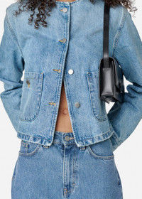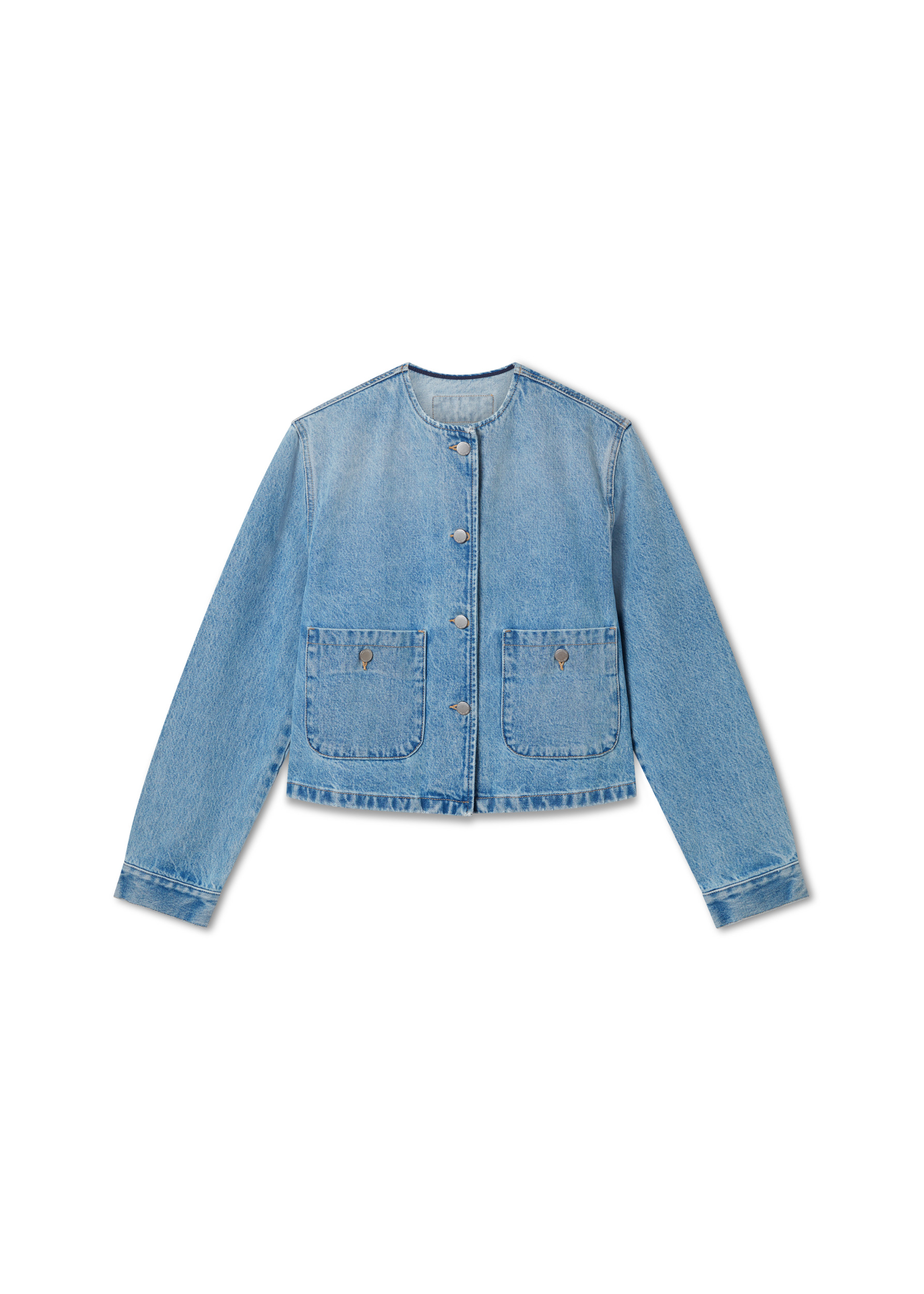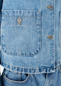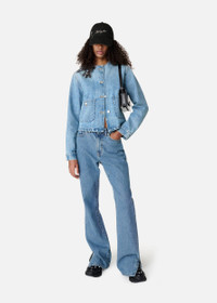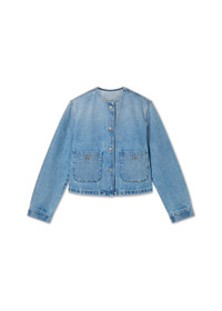 Crafted in Italy, the Deia jacket has a cropped, collarless silhouette cut from washed cotton-denim. Branded buttons and an embroidered patch finish this piece. This item is made from carefully selected denim that’s finished to achieve a specific look. As a result, garments may differ slightly. Due to the nature of the dyeing process, some dye may transfer or rub off on to lighter color garments or upholstery. The model is 176 cm / 5”9 ft and wears a size S. Style Details - 100% Cotton - Cropped fit - Washed Denim - Branded metal buttons - Chest pockets fastened with shank buttons - Sleeve cuffs fastened with shank buttons - 'Arigato' embroidered self fabric patch at the centre back neck - Crafted in ITALY - Care instructions:30 degrees gentle cycle, wash with similar colours. - Wash separately and inside out. - Iron low and inside out.
