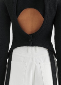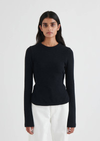 The Fleur top is crafted from organic cotton-blend jersey with a textured bouclé-effect finish. The slim silhouette has an open back that’s meticulously cut to create a layered look. The model is 178cm / 5'10 ft and wears a size S.