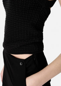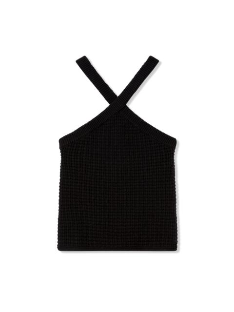 The Halter tank is crocheted from a soft cotton-blend and features slim straps that crossover at the back. Our seasonal branded label finishes this piece. The model is 180 cm / 5”11 ft and wears a size S. Style Details - 76% Cotton 20%Polyamide 4% Elastane - Regular fit - Open knitted crochet knit - Halter neck - Open back - Seasonal branded label - Crafted in China - Care instructions:Hand wash cold