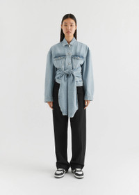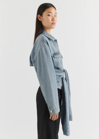 The cotton-denim Hydra jacket features a draped tie designed to be knotted at the waist. The adjustable tie can be removed for a more minimal silhouette. The model is 178cm / 5'10.5 ft and wears a size S. Please refer to the size guide for exact product measurements.
