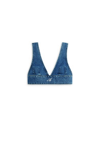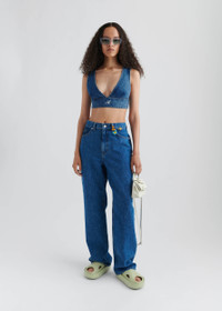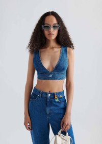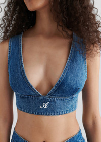 The Jules top is crafted from cotton-denim in a cropped, V-neck silhouette. Our Signature A embroidery finishes this piece. The model is 178cm / 5'10 ft wears a size S.