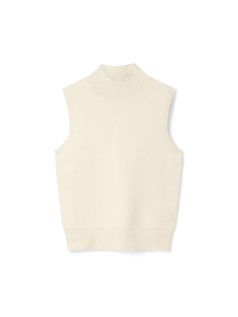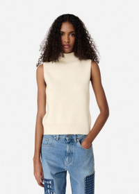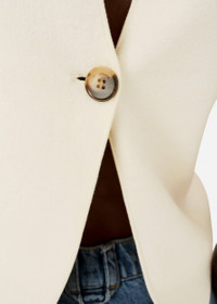 The double-knit June top is woven with touches of soft wool. Its mock-neck silhouette features an open back with a button closure. The model is 176 cm / 5”9 ft and wears a size S. Style Details - 30% Wool 19% Polyamide 26% Polyester 19% Viscose 6% Elastane - Regular fit - Dense double knit - Open back with button closure - Mock-neck - Branded button - Crafted in China - Care instructions:Hand wash cold