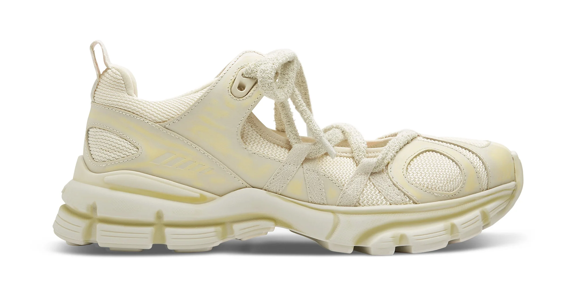 The Marathon Ballet combines a cutout upper and chunky tread sole for a distinctive silhouette. Handcrafted in Portugal, this model has a knitted profile detailed with leather overlays and features fluffy laces that crisscross over the open top. Style Details - Upper: 50% Leather, 50% Polyester - Lining: 86% Polyester, 14% Elastane - Sole: 100% TR - Height measures 35mm - European sizing - Flat fluffy laces - Herringbone webbing with embroidered branding - Handcrafted in Portugal
