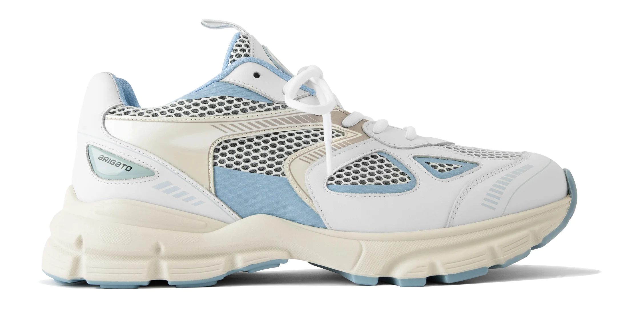 The design of the Marathon Runner is inspired by running shoes throughout the 90’s with the addition of an exaggerated sole. The upper is Manufactured using leather and a wide-weave mesh fabric, protected by a PU transfer. Detailing features digitally printed graphics in contrasting colours and reflective webbing. Designed for use in the city, this shoe is not intended for sporting activities. Style Details - Handcrafted in Portugal - Upper: 60% Leather, 40% Polyester - Lining: 100% Polyester Mesh with anti slip detail in counter back - Custom Termo Plastic Rubber sole measures 3,5cm back and 2,5cm front - Removable cushioned insole - Cemented construction - Reflective Webbing detail - Marathon Branded rubber patch - Recycled polyester branded dustbag - FSC certified packaging