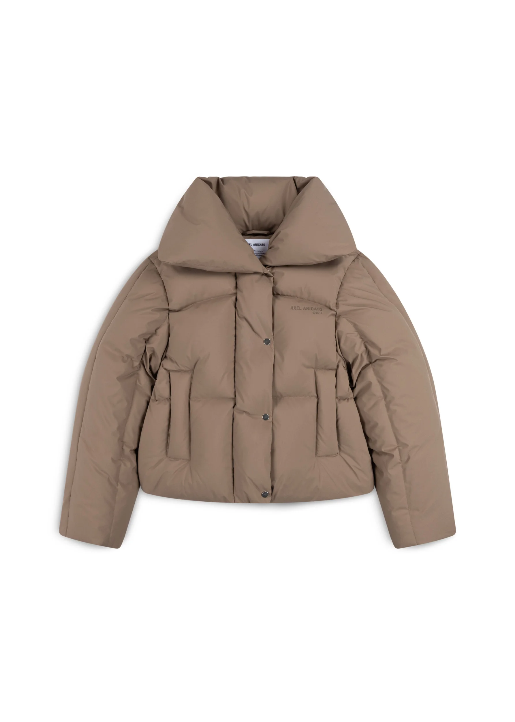 The Mist puffer jacket is crafted from recycled shell with a matte finish. Filled with repurposed down, it features an oversized collar and adjustable drawcord at the hem. Style Details - Main fabric: 100% Recycled Polyester - Filling material: 85% Re-Used Duck Down 15% Feather - Matt fabric - Oversized collar - Branded Zip closure - Metal snap buttons at front - Zip pockets - Adjustable cord at hem - Tonal screen print branding at chest - Internal pockets - Hidden elasticated cuff - Regular Fit - Crafted in China - Care instructions:30 degrees gentle wash, tumble dry low heat