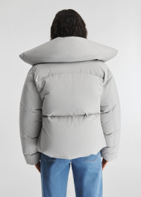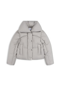 The Mist puffer jacket is crafted from recycled shell with a matte finish. Filled with repurposed down, it features an oversized collar and adjustable drawcord at the hem. Style Details - Main fabric: 100% Recycled Polyester - Filling material: 85% Re-Used Duck Down 15% Feather - Matt fabric - Oversized collar - Branded Zip closure - Metal snap buttons at front - Zip pockets - Adjustable cord at hem - Tonal screen print branding at chest - Internal pockets - Hidden elasticated cuff - Regular Fit - Crafted in China - Care instructions:30 degrees gentle wash, tumble dry low heat