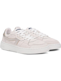 Handcrafted low-top nubuck and grained leather sneakers in off-white and silver tone. · Perforations at toe · Lace-up closure · Logo patch at SEAQUAL® YARN recycled canvas tongue · Padded collar · Logo applique at sides · Logo stamp at outer side and heel tab · Mesh and faux-suede lining · Logo embossed at textured rubber midsole · Treaded rubber sole Supplier color: White/Silver Upper: leather. Sole: rubber. Made in Portugal 251307F128041