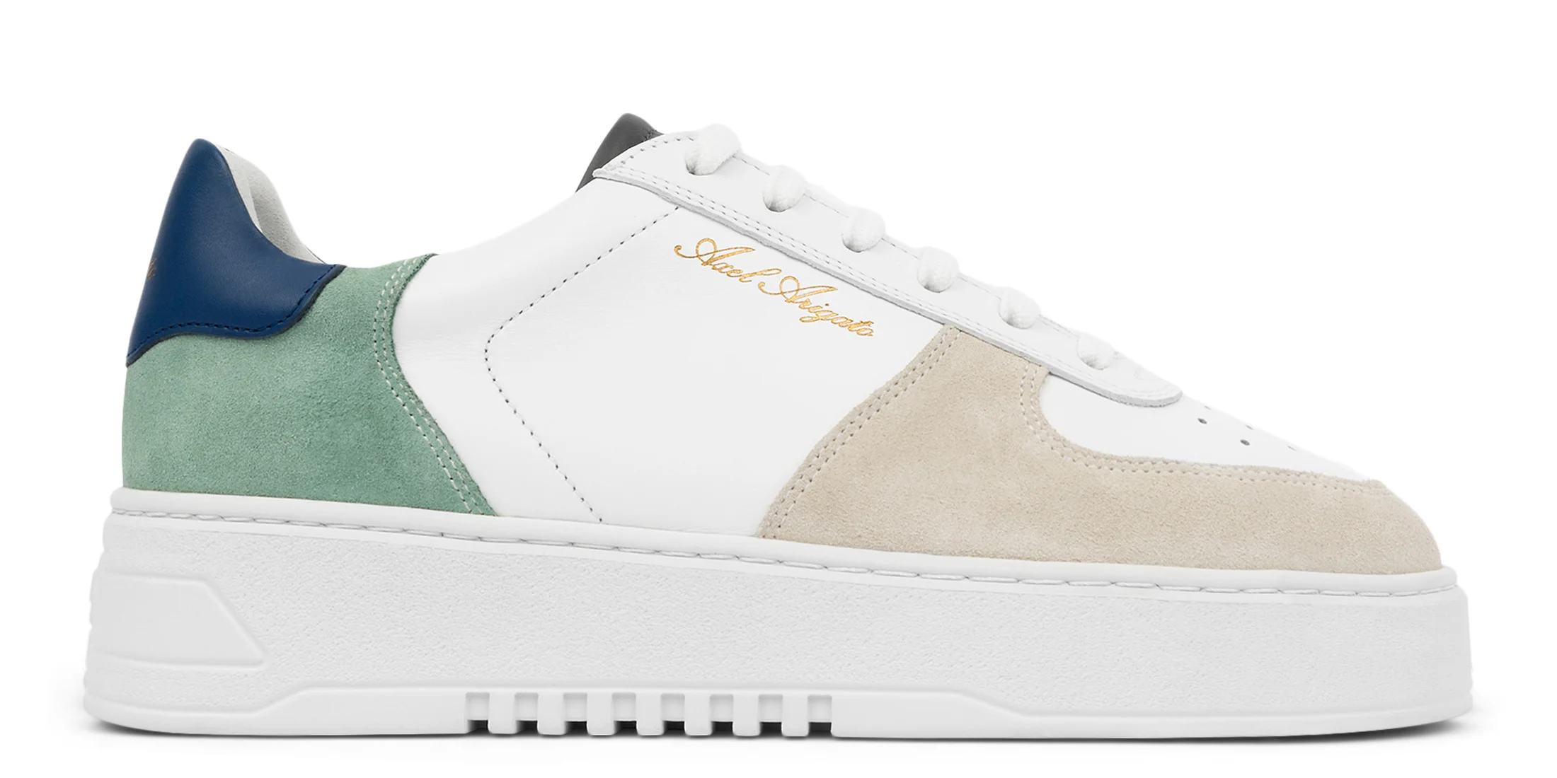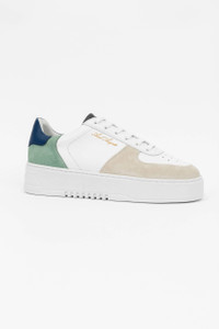 The Orbit Sneaker presents a future classic set on a platform customer rubber sole. The panels keep things interesting with a mix of leather and suede in contrasting colorways, detailed with a gold Axel Arigato logo stamp written in cursive.