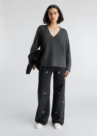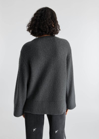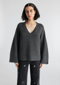 The V-neck Rain sweater is knitted from a soft blend of wool and cashmere that’s lightly distressed. Wide sleeves and a Signature A pin finish this piece. Style Details - 90% Wool 10% Cashmere - Distressed finish - Wide sleeve - Signature A pin - relaxed Fit - Crafted in China - Care instructions:Hand wash cold