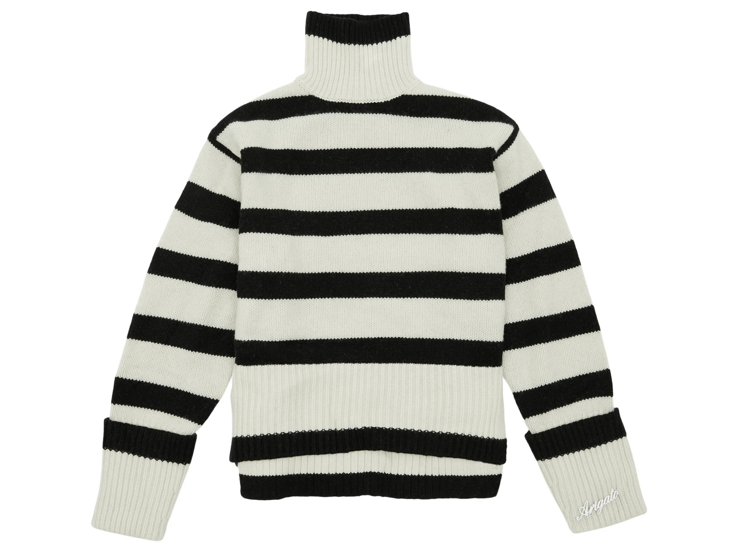 The Remain turtleneck sweater is knitted from a merino wool that’s notably soft and warm. One of the folded cuffs features our Arigato pin and the hem is split to accentuate the relaxed silhouette. This sweater is cut in an oversized fit. The model is 176cm/ 5'8 ft and wears a size S. Style Details - 100% Merino Wool - Rib turtleneck collar - Chunky double knitted hem - Folded ribbed cuffs - Comes with our Arigato pin - Oversized Fit - Hand wash cold - Crafted in China