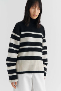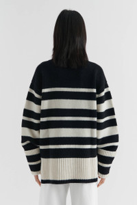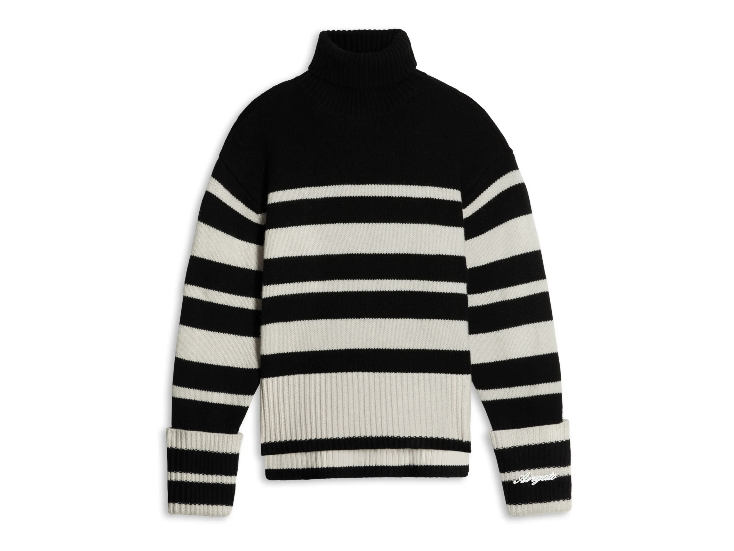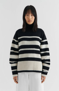 The Remain turtleneck sweater is knitted from a merino wool that’s notably soft and warm. One of the folded cuffs features our Arigato pin and the hem is split to accentuate the relaxed silhouette. This sweater is cut in an oversized fit. The model is 176cm/ 5'8 ft and wears a size S.