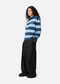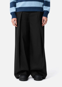 Tailored with touches of soft wool, the Riley trousers have a loose silhouette detailed with buttoned pleats. Tonal embroidery details the back pocket. This item is made from a wool-blend. Due to its fragile nature, we recommend handling it with care. In order to preserve its unique look and feel, avoid exposing it to abrasive surfaces. The transfer of fibers may occur if it is placed near other garments. Style Details - 35% Wool 63% Polyester 2% Spandex - Loose Leg - Front pleat detail fastened with buttons - Side Pockets - Zip fly closure with hook & bar fastening - Tonal embroidery at back pocket - Back welt pockets - Belt loops - Crafted in China - Care instructions: Dry Clean Only