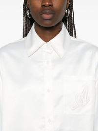 light beige front button fastening chest patch pocket buttoned cuffs embroidered logo at the chest Size & Fit Model Measurements: Height: 1.81 m Bust/Chest: 83.0 cm Hips: 92.0 cm Waist: 61.0 cm Model wears size XS Fabric and Care Designer Style ID: A3055001 Designer Colour: OFF WHITE Composition: Spandex/elastane 2%, Polyester 98% Washing instructions: Dry Clean Only