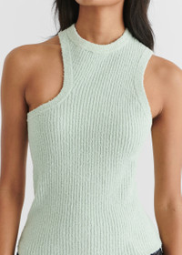 The Scoop tank top is crafted from a stretch cotton-blend with a textured bouclé-effect finish. Unique asymmetric straps finish this piece. The model is 178cm / 5'10 ft and wears a size S.