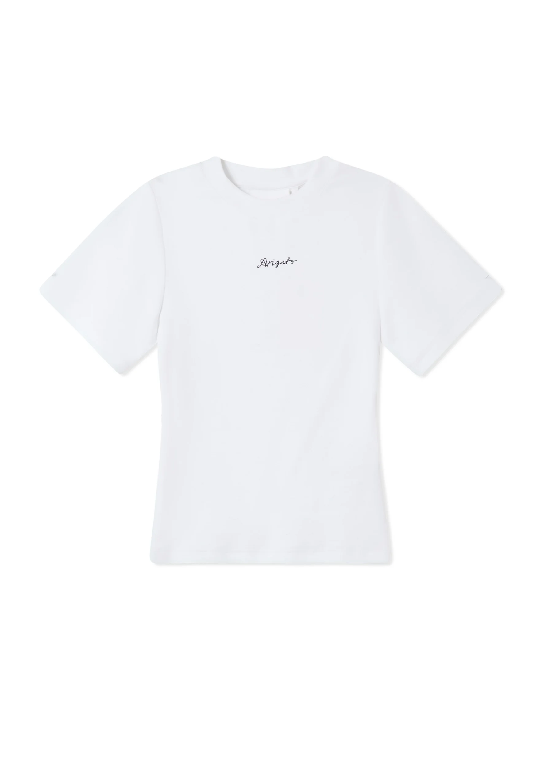 The Sketch T-shirt has a slim silhouette crafted from soft stretch-cotton. ‘Arigato’ branding finishes this piece. This product is made from a delicate fabric with a unique finish. Please handle it with care. Style Details - 97% Cotton, 3% Elastane - Slim fit - Contrast 'Arigato' icing print at centre front - Crafted in Portugal - Care instructions:30 degrees gentle cycle, wash with similar colours