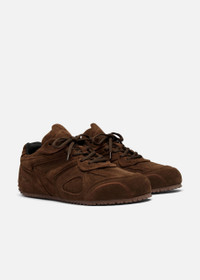The Slow Runner’s layered, low-profile silhouette embodies the ethos of deconstruction and innovation. A seamless blend of old and new, the upper reimagines the iconic Marathon Runner through familiar, intricate panels of tonal soft suede. This model is set on a sleek, flat outsole with a unique knit-inspired finish that echoes design elements from our ready-to-wear collections. Style Details - Upper: 100% Suede - Lining: 85% Recycled Polyester, 15% Microfibre - Sole: 100% Rubber - Height measures 7mm - European Sizing - Round laces - Debossed branding on tongue - Handcrafted in Portugal