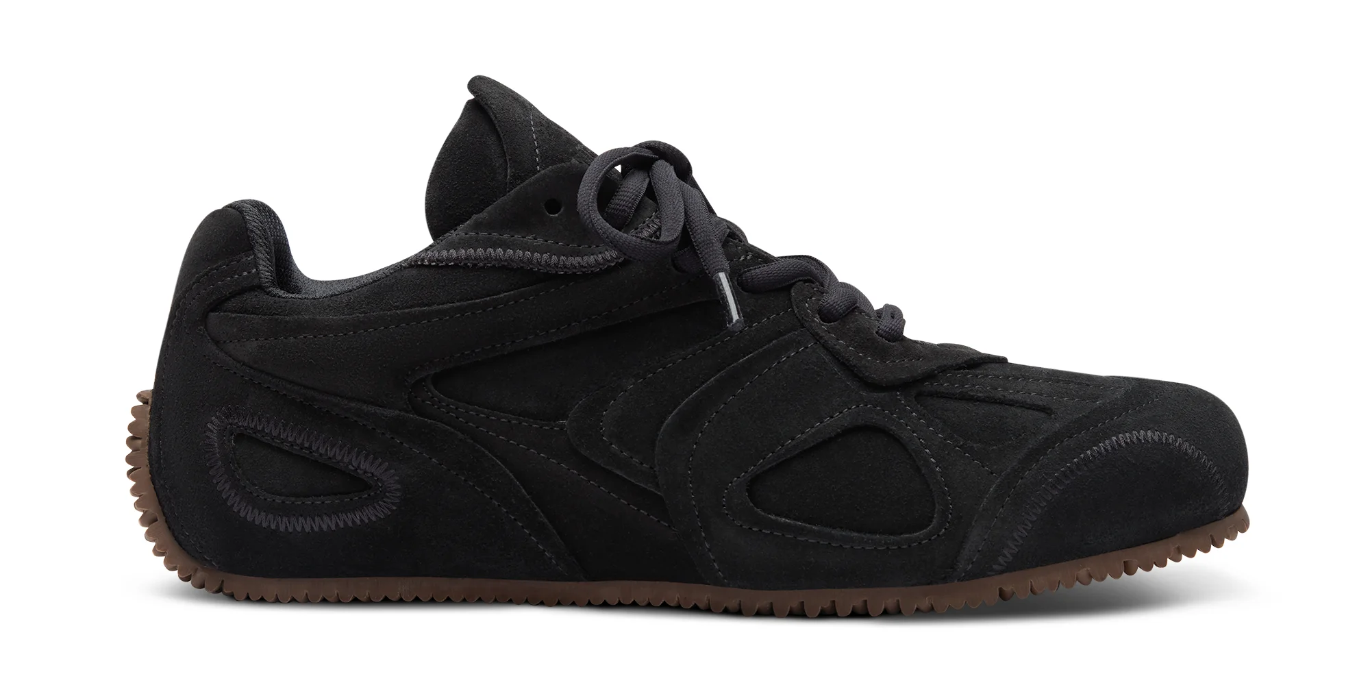 The Slow Runner’s layered, low-profile silhouette embodies the ethos of deconstruction and innovation. A seamless blend of old and new, the upper reimagines the iconic Marathon Runner through familiar, intricate panels of tonal soft suede. This model is set on a sleek, flat outsole with a unique knit-inspired finish that echoes design elements from our ready-to-wear collections. Style Details - Upper: 100% Suede - Lining: 85% Recycled Polyester, 15% Microfibre - Sole: 100% Rubber - Height measures 7mm - European Sizing - Round laces - Debossed branding on tongue - Handcrafted in Portugal