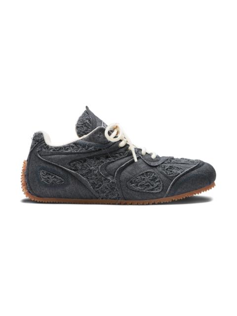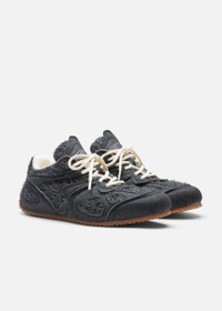 The Slow Runner’s layered, low-profile silhouette embodies the ethos of deconstruction and innovation. A seamless blend of old and new, the upper reimagines the iconic Marathon Runner through familiar, intricate panels of Italian denim with a tactile denim underlay. This model is set on a sleek, flat outsole with a unique knit-inspired finish that echoes design elements from our ready-to-wear collections. Style Details - Upper: 100% Cotton - Lining: 85% Recycled Polyester, 15% Microfibre - Sole: 100% Rubber - Height measures 7mm - Italian Denim - European Sizing - Round laces - Debossed branding on tongue - Handcrafted in Portugal