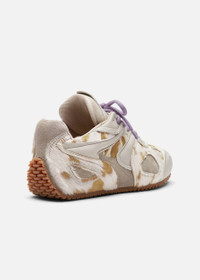 The Slow Runner’s layered, low-profile silhouette channels a deconstructed approach to classic running styles. Inspired by the iconic Marathon Runner, the upper combines panels of leather, suede, and mesh in an intricate mix of textures. A gum outsole grounds the design, while knit-inspired details and contrast laces add a subtle nod to our ready-to-wear collections. Style Details - Upper: 100% Suede - Lining: 58% Shearling leather, 28% Recycled Polyester, 14% Microfibre - Sole: 100% Rubber - Height measures 7mm - European sizing - Debossed bubble branding - Real shearling lining - Handmade in Portugal