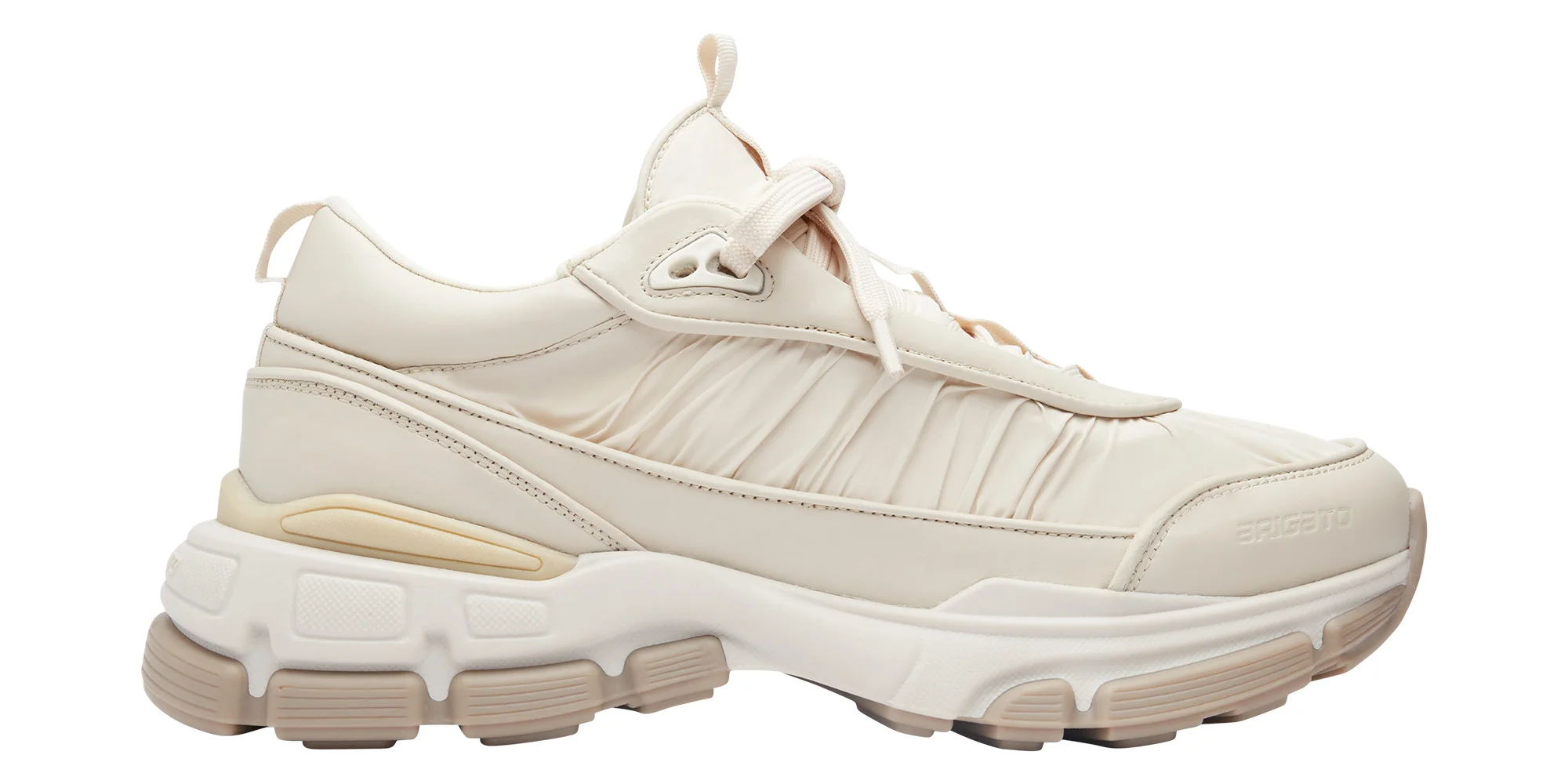 The Sphere Ruche Runner is enveloped in a swathe of ruched fabric that creates depth, dimension and a tactile finish. Crafted by hand in Portugal, it’s paneled with premium leather and set on a customized version of our chunky Marathon Runner sole. Style Details - Upper: 72% Leather, 28% polyamide - Lining: 76% Recycled Polyester, 14% Elastane, 10% Microfiber - Sole: 100% TR - Height Measures 35mm - European Sizing - Ruched fabric detailing - Flat laces with silky finish - Seams finished with piping detail - Branded toe panel - Tonal execution - Handcrafted in Portugal