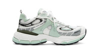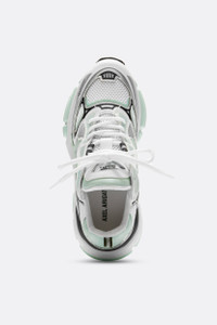 The Sphere Trip Runner combines design elements of ‘90s athletic shoes with an exaggerated sole. This handmade model is inspired by motion and soundwaves, which are captured through curved LWG-certified leather and mesh panels, as well as meandering color and embossing. Each pair is lined with recycled polyester and set on custom thermoplastic rubber soles.