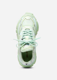 The Sphere Trip Runner combines design elements of ‘90s athletic shoes with an exaggerated sole. This handmade model is inspired by motion and soundwaves, which are captured through curved panels of leather and mesh. Style Details - Upper: 78% Leather + 16% Polyester + 3% PU Synthetic + 3% PU Transfer - Lining: 83% Recycled Polyester + 8.5% PU + 8.5% PA - Sole: 100% TR; heel height measuring 35mm - European Sizing - Reflective webbing and transfer detail - Branded TPU tongue branding - Handmade in Portugal