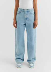 The Studio Stripe jeans are crafted from cotton-denim in a relaxed silhouette. Curved inserts finish this pair, creating a contrasting side stripe. The model is 178cm / 5'10 ft and wears a size 26. Please refer to the size guide for exact product measurements.