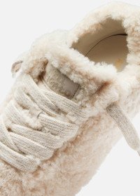 The Tact Shearling Runner’s low-profile silhouette is distinctly bold – blending a minimalist design approach with experimental materials. Handcrafted in Portugal, it’s trimmed with leather and made from Italian suede paired with real shearling for a plush, teddy-bear texture. Wool laces and a debossed bubble branding patch bring added dimension, while hand-drawn chain-stitch embroidery subtly details the tongue. The design is set on a uniquely molded rubber sole, crafted to resemble knitwear. Style Details - Upper: 100% Polyester - Lining: 67% Leather, 33% Recycled Polyester - Sole: 100% Rubber - Height measures 7mm - European Sizing - Debossed bubble branding patch - Wool laces - Handmade in Portugal