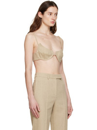 Linen twill bra. · Underwire at cups · Fixed spaghetti shoulder straps · Adjustable hook-eye fastening at back · Full plain-woven cotton lining Supplier color: Sand Body: 100% linen. Lining: 100% cotton. Made in Georgia 231188F073005