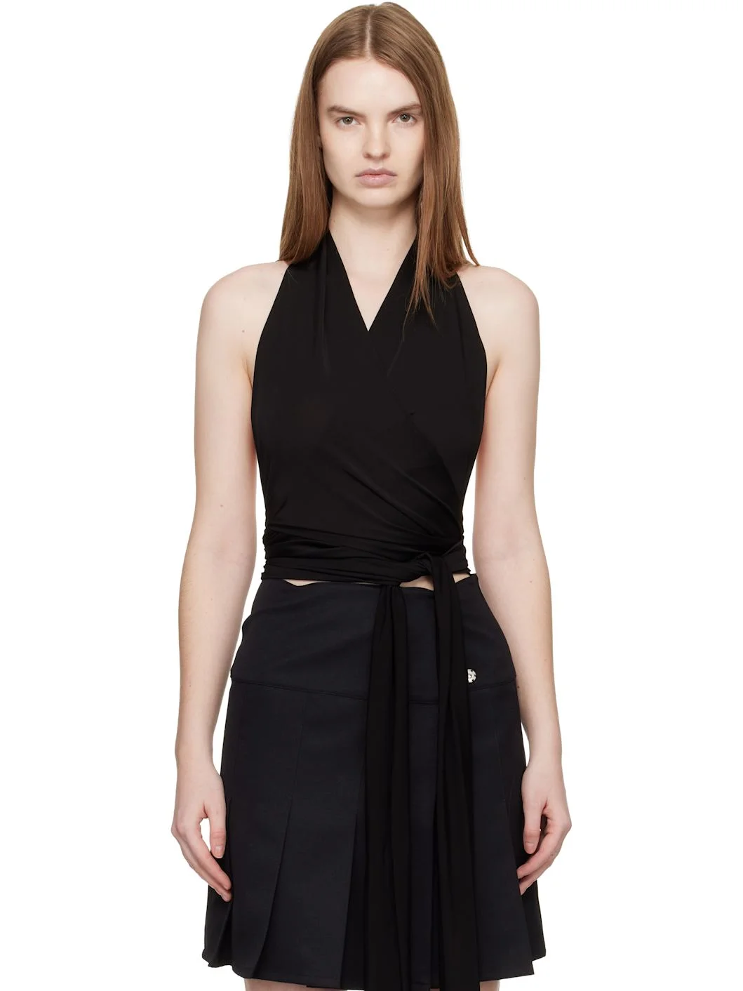 Jersey top. · Wrap construction · V-neck · Halter strap · Self tie at waist Supplier color: Black 80% acetate, 20% polyamide. Made in Portugal 261188F111015