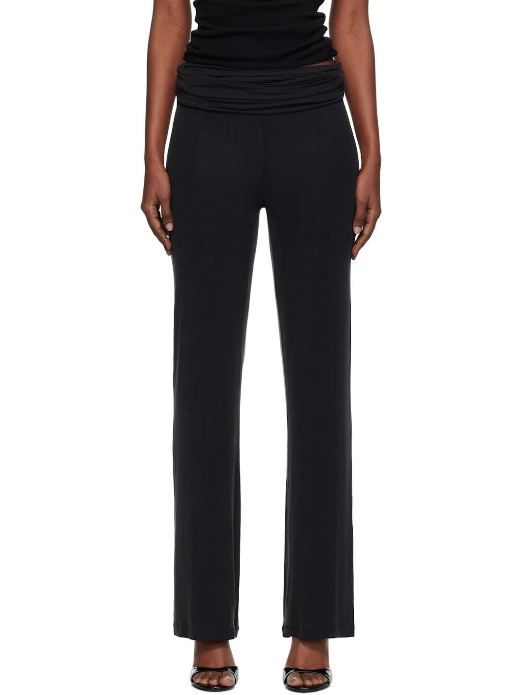 Black Ruched Fold Over Trousers