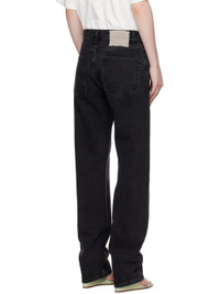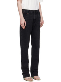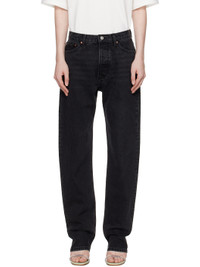 Tapered non-stretch denim jeans. Fading and whiskering throughout. · Belt loops · Five-pocket styling · Button-fly · Patch at back waistband Supplier color: Black 100% cotton. Made in Pakistan 251188F069017
