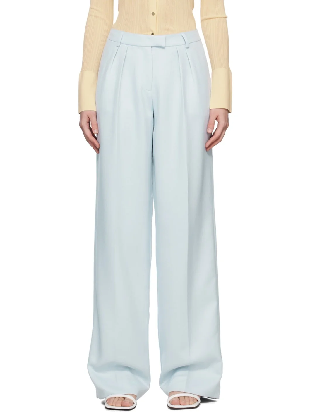 Polyester twill trousers. · Belt loops · Three-pocket styling · Zip-fly · Pleats at front · Creased legs Supplier color: Sky melt 100% polyester. Made in Georgia 231188F108002