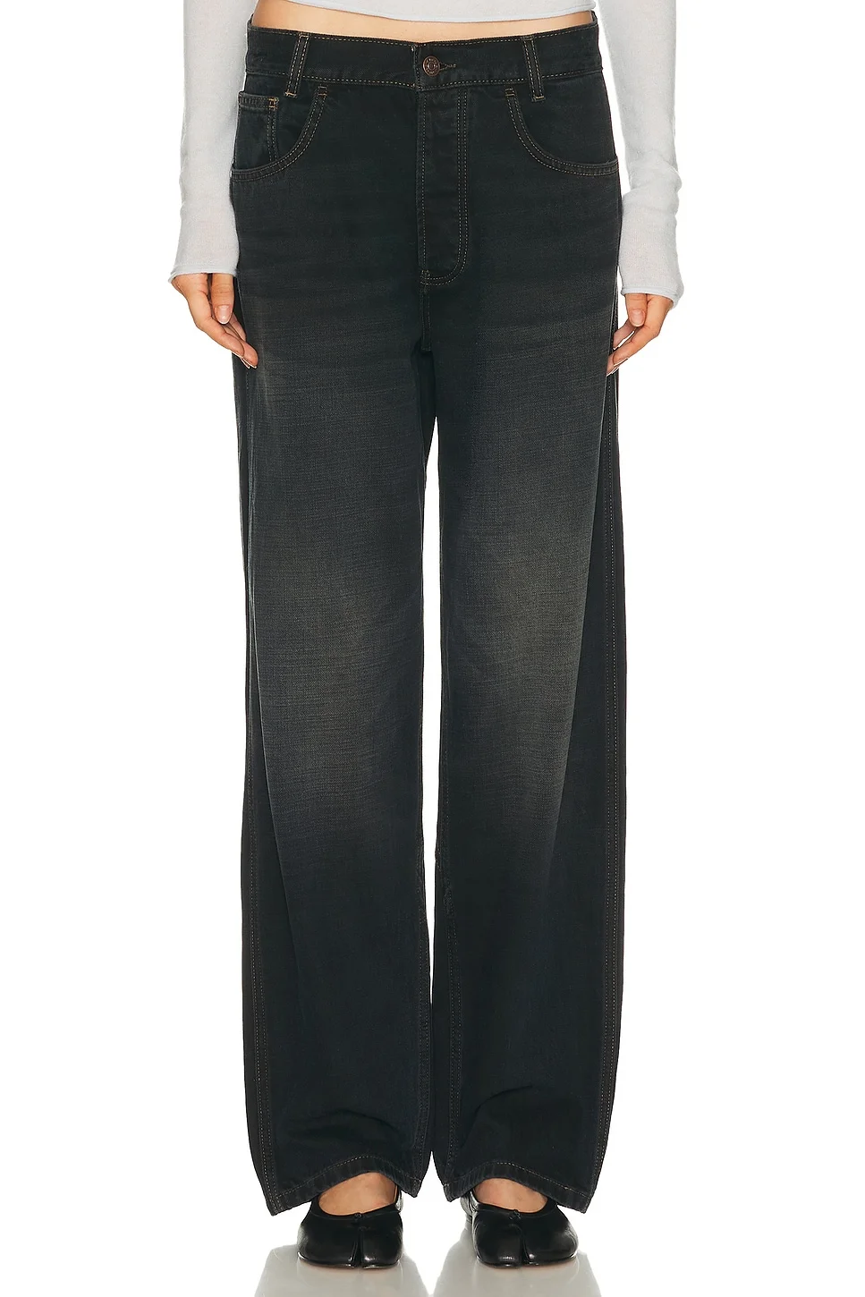 Details - 100% cotton - Machine wash - Button fly closure - 5-pocket design - Back adjustable buckle strap - Intentional fading and light whiskering - Back logo patch - Heavyweight denim fabric - Made in Pakistan - Our Style No. AYAF-WJ1 - Manufacturer Style No. AMFW2561