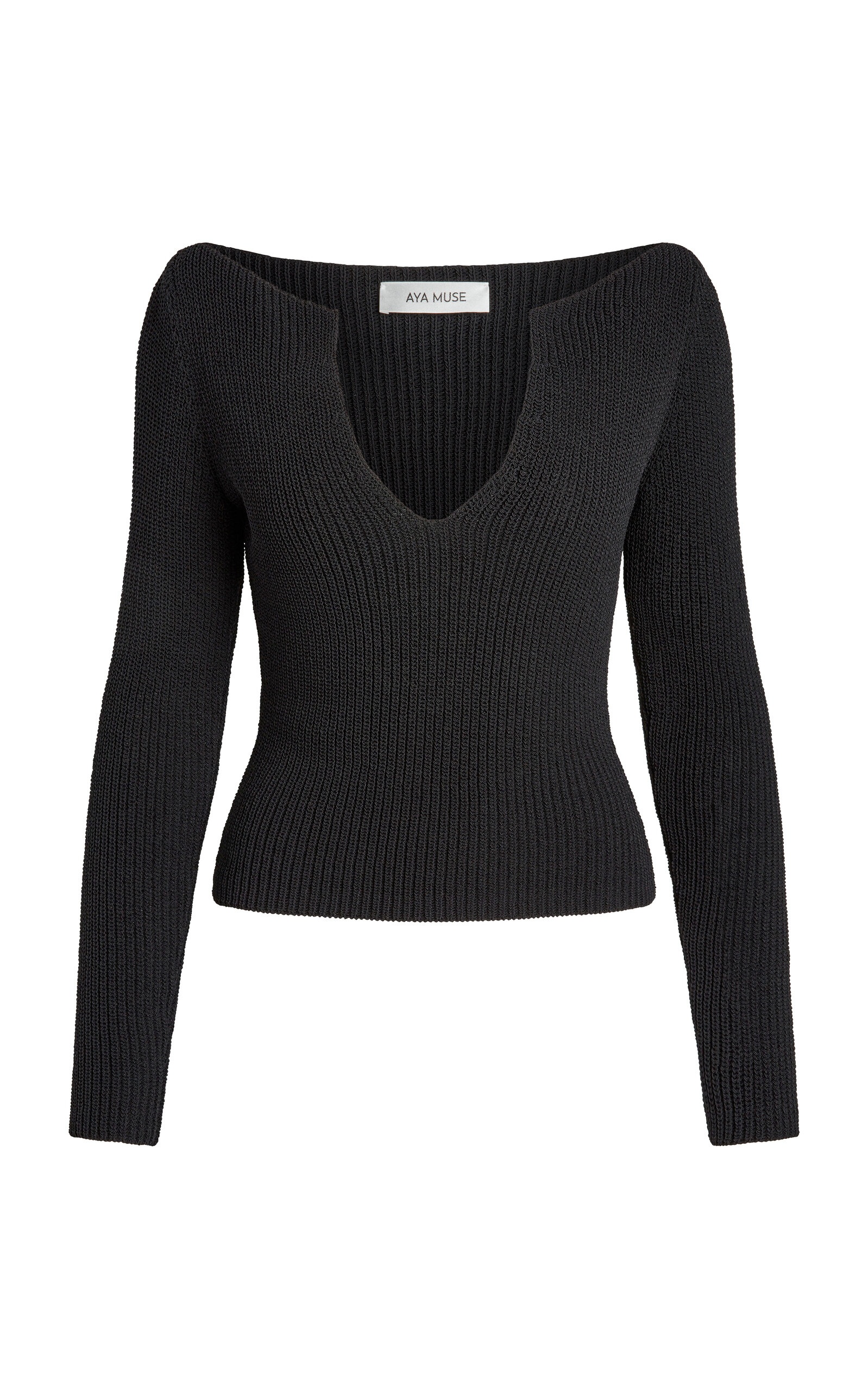 Caeli Plunged Knit Cotton-Blend Top black
