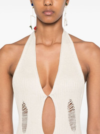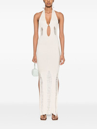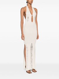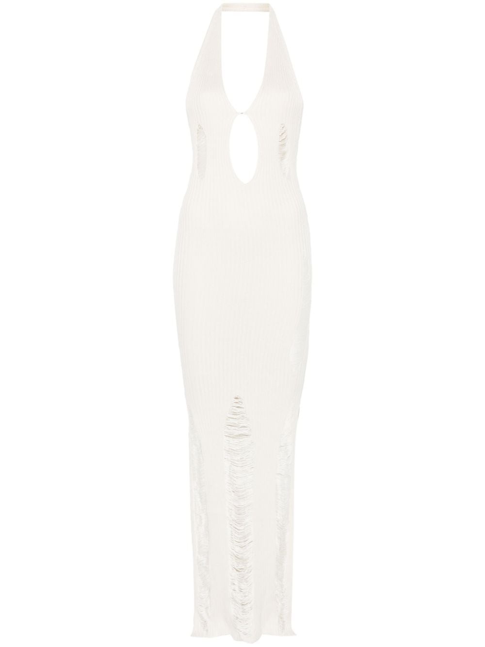 Ceres maxi dress Highlights - Off-white - Silk blend - Ribbed knit - Distressed effect - Plunge style - Halterneck - Bodycon design - Side slits - Open back - Unlined - Long length Imported Composition Silk 55%, Viscose 45% SIZE & FIT Model measurements Height 5 ft 10 in(1.77 m) Bust/Chest 32.28 in(82 cm) Hips 37 in(94 cm) Waist 25.19 in(64 cm) FittingInformation Designed for a slim fit that sits just away from the body offering a close yet comfortable fit Made with a midweight knit, this piece offers some stretch